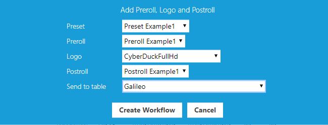 "Headline": "Add Preroll, Logo and Postroll",