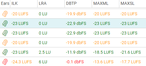 Loudness Ears indicate whether an audio entry matches the defined Loudness requirements or not. This icon is only displayed for entries which have loudness metadata.