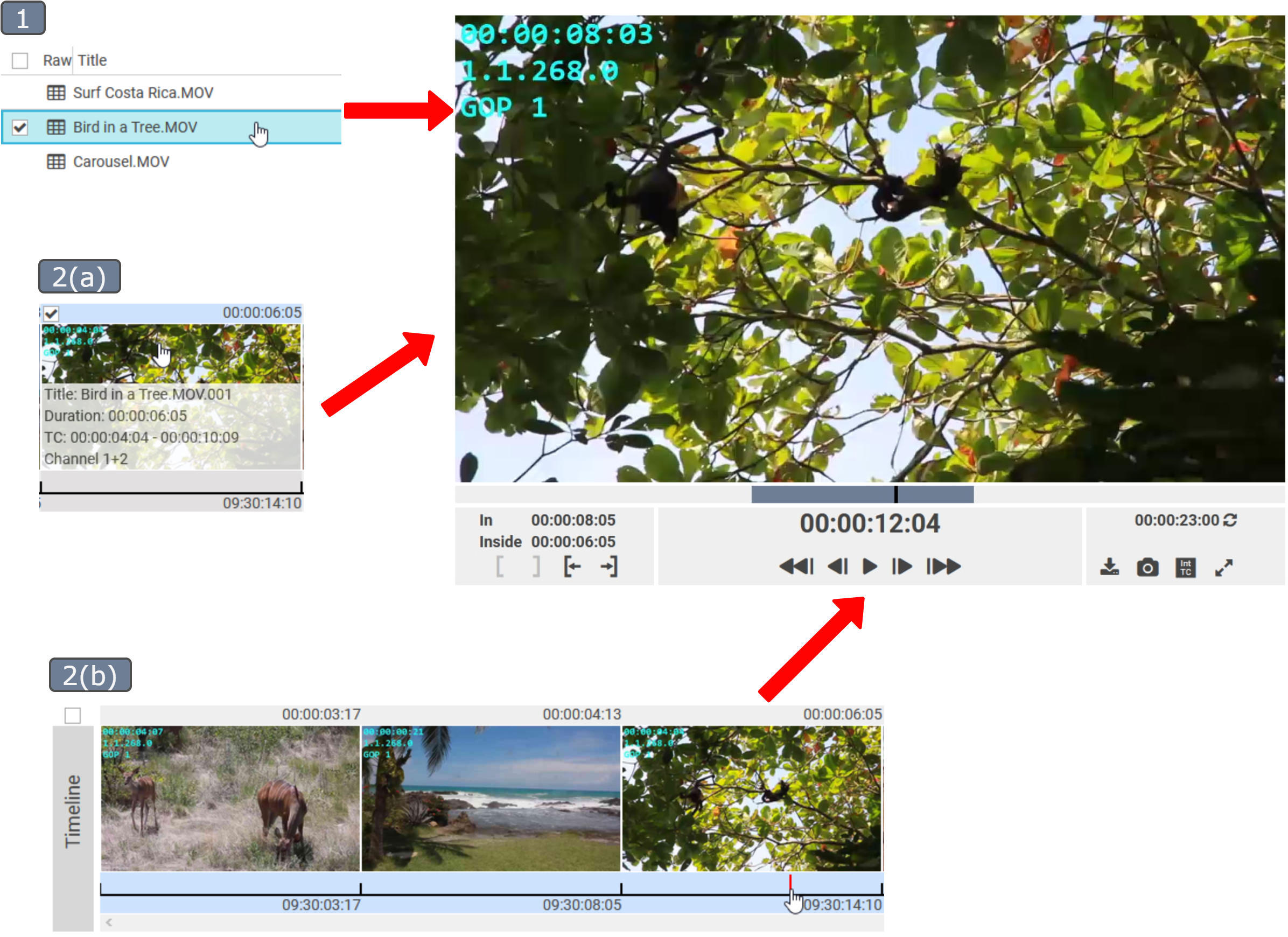 Previewing Imported Clips, Segmented Clips and the Timeline