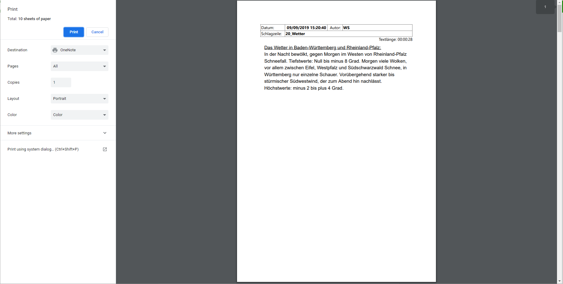 Click on the "Print" menu entry in the ContentManager topbar - appearance depends on configuration made by your DigAs Admin.