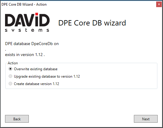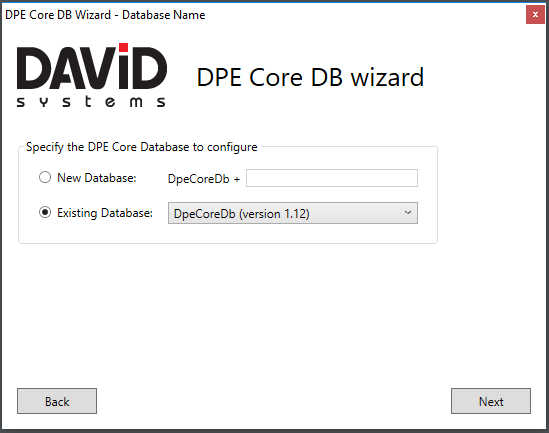 New Database: You can optionally enter a title to a new database. This title will be added to the Default database name DpeCoreDb.