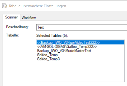 Tables that are used in the TableWatcher config but are not existing in DigaSystem table base configuration are visualized like "<<tablename>>" in the table list and must be removed manually by an administrator.