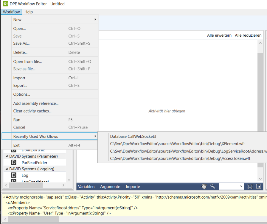 Opening recently used Workflows