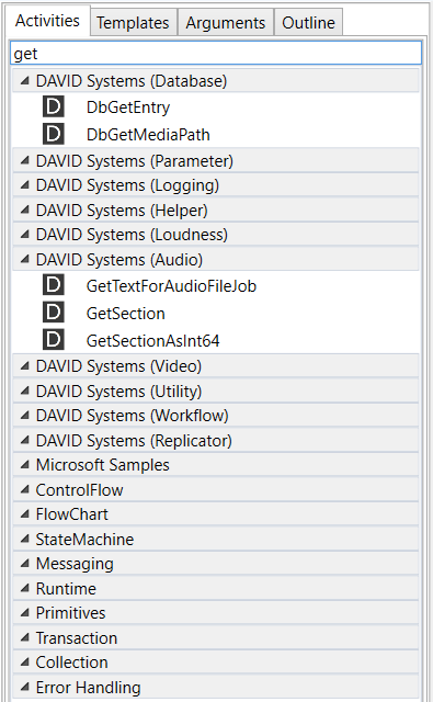 Use the search box to find activities easily, e.g. activities that contain the text "get":