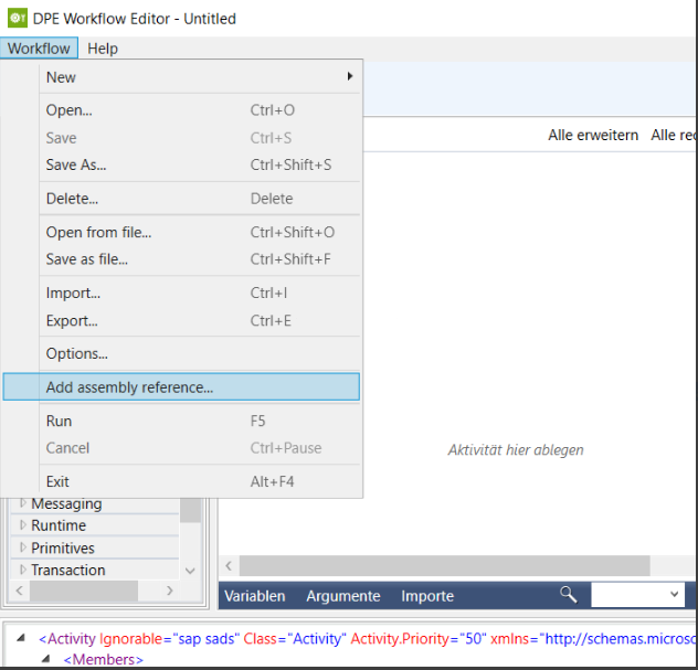- Start Workflow Editor and open your Workflow Template which should use the DLL