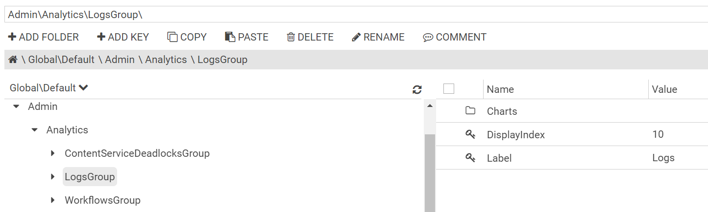 Each sub folder below defines a category name, e.g. “LogsHroup”, “WorkflowsGroup”.