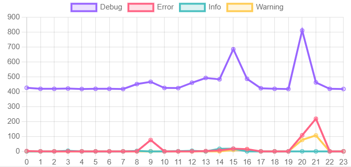 LogLevelsByHour: Log item count/hour for a day grouped by log level