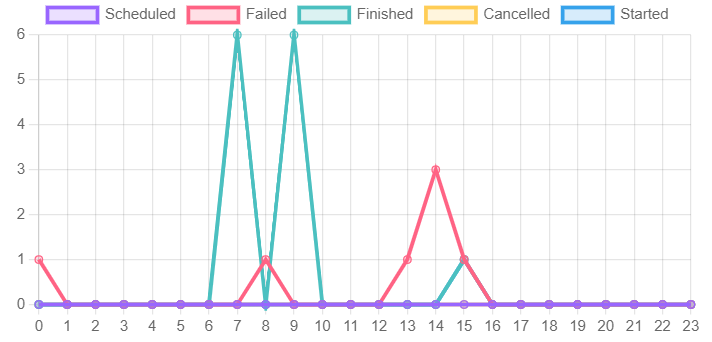 WorkflowStatesByHour: Worfklow instance count/hour for a day grouped by state