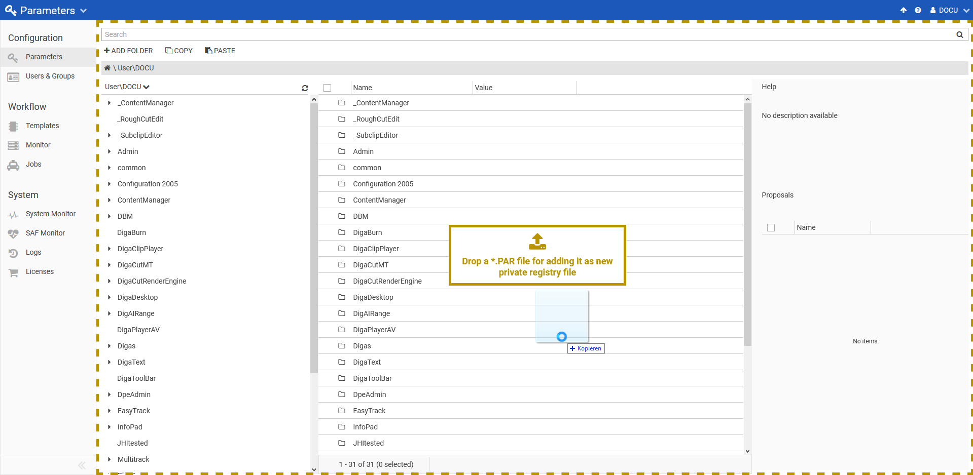 Importing registries by drag and drop