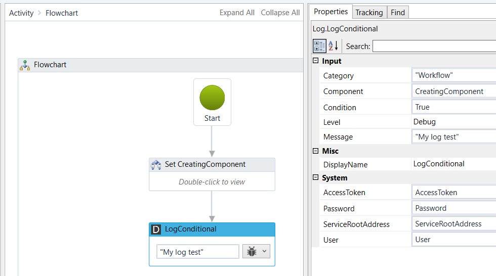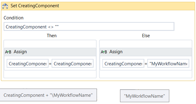 - Use the workflow argument CreatingComponent in the Log and LogConditional activity as Component
