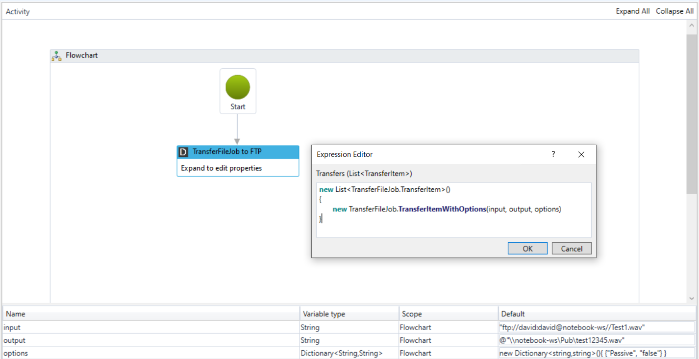 A list of TransferFileJob.TransferItemWithOptions objects. Each TransferItemWithOptions specifies a source path, a destination path and a Dictionary<string, string> containing options.
