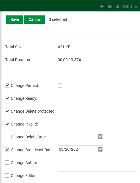 Background consistency checks make sure that changes made to the metadata are logical. These ensure, for example, that the DeleteDate is after the BroadcastDate. If this is not the case, a dialogue appears. Similar checks are executed when applying a new DeleteDate or BroadcastDate in a bulk operation to multiple entries.