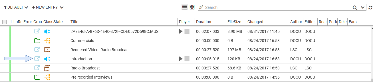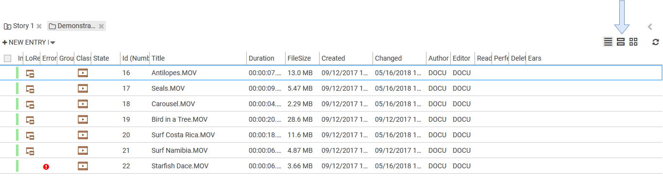You can start viewing entries in the thumbnail view e.G. audio data (on the left side).