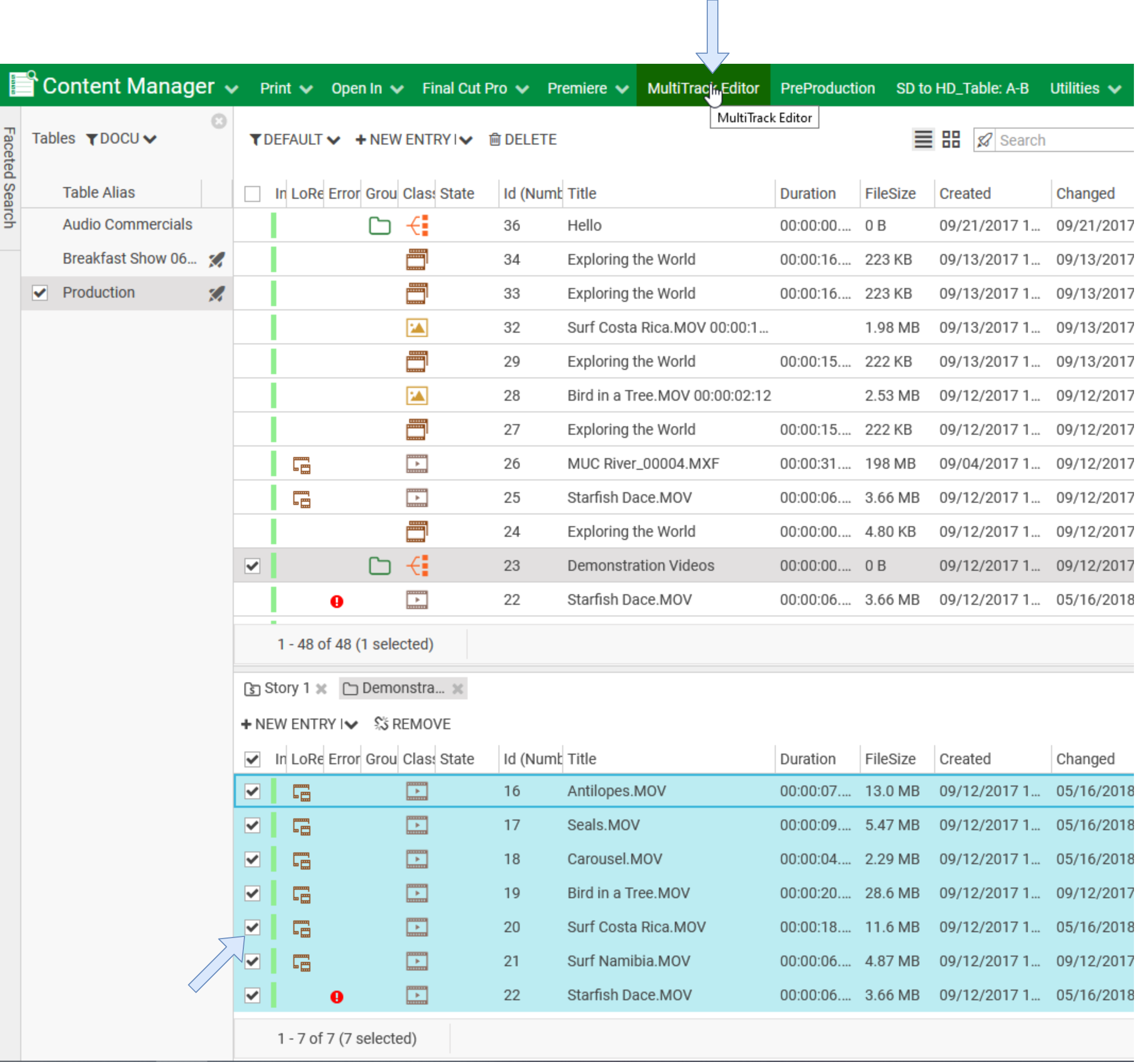 This is a key feature! It enables you to select and sort entries before transferring them as a batch to an external application, such as Adobe Premiere or FinalCut Pro.