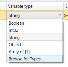 Click onto the text "String" in the column "Variable type" to change the type: