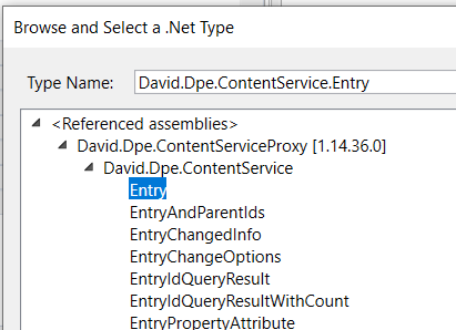 Select "Browser for Types..." and then enter the text "entry":