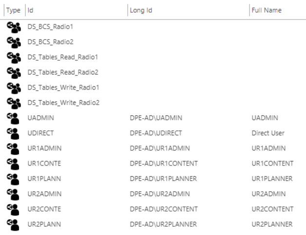| A_Radio2_Admin | DS_Tables_Read_Radio2 | DS_Tables_Write_Radio2 | DS_BCS_Radio2 |