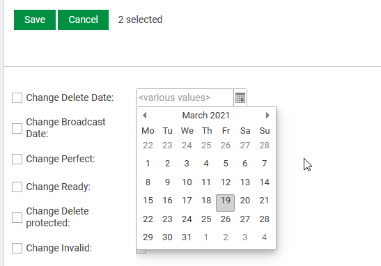 - If one or more entries have different date values then "<various values>" is displayed.