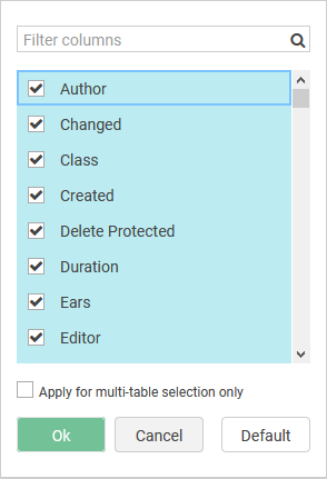 It is also possible to configure columns for multi-table selection mode. For such case, use MultiSelect key inside |ContentManager|Columns|Multiselect.