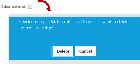 In the details pane, an entry can be delete protected. A dialogue box appears if an attempt is made to soft delete a protected entry, where the user can choose if they want to proceed.