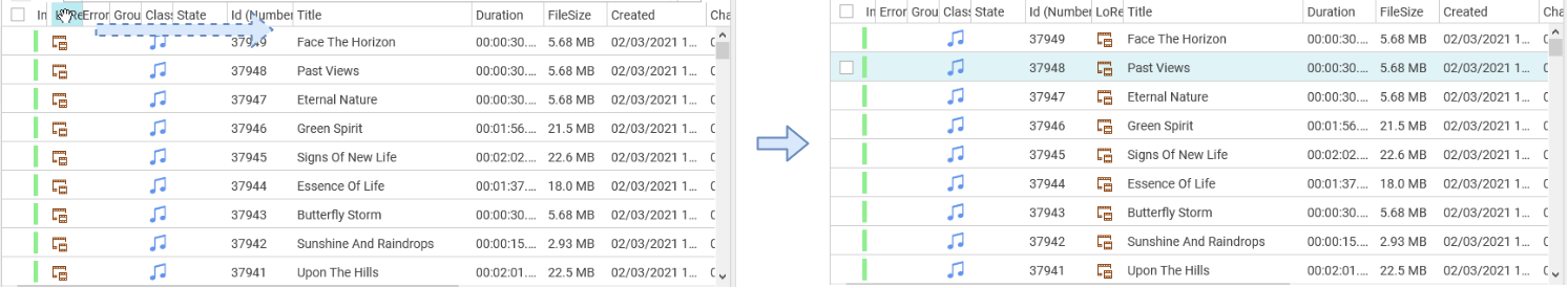 DPE grids can be easily adapted to show / hide columns directly from a configuration dialog which is built into the user interface.