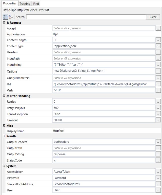 Invokes a HTTP POST REST service request and stores result either in a file or a string variable. An optional request body can be specified.