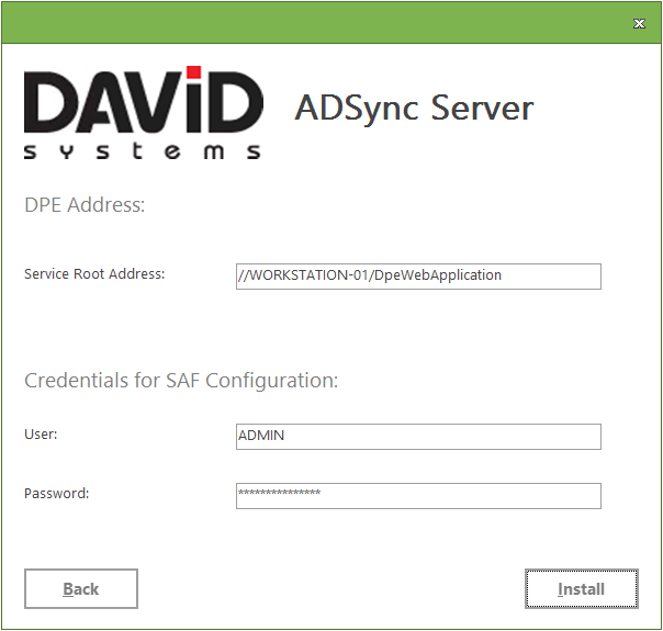 Credentials for SAF Configuration: Enter the credentials of the DigaSystem account SAF will run with after the installation.