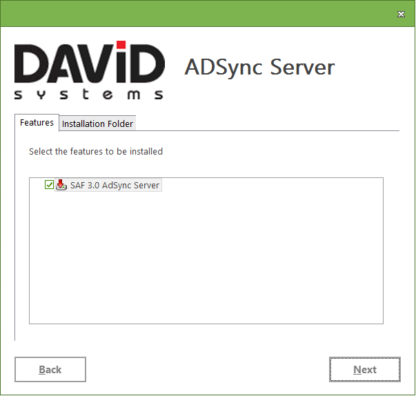 If you want to specify where AdSync should be installed change to the tab Installation Folder to choose the installation directory. Click on Next.