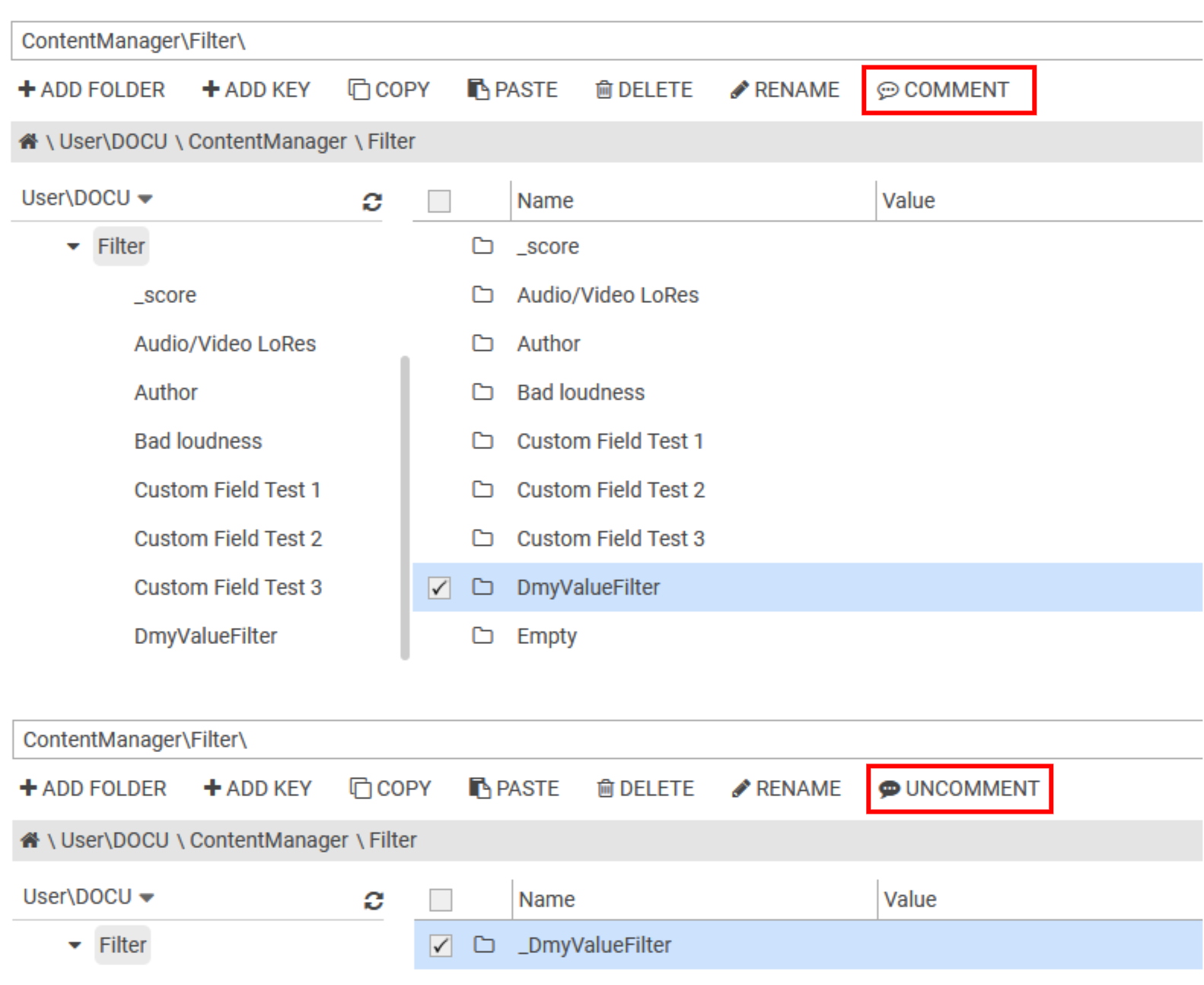 COMMENT / UNCOMMENT a Key / Folder
