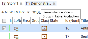 - If entries are added to a story/group, that do not originate from the same table, the entry is copied at the story/group's table automatically in the background (The status is set to 'Recording' in this case and will change to Existing after copying finished)
