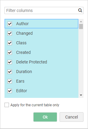 - Column configuration for the table is automatically updated on any subsequent change in the grid (column order or width or visible columns in grid configuration dialog).