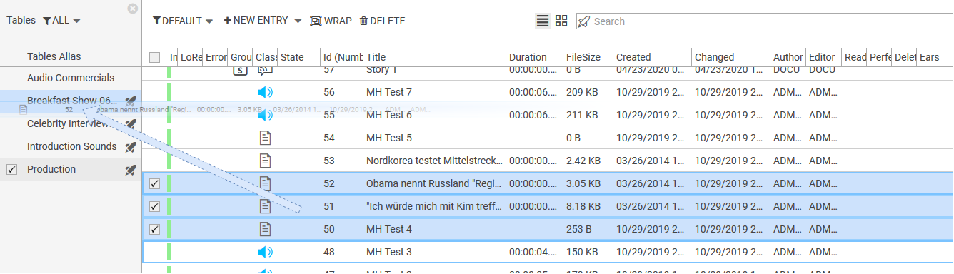 • Copying one or more entries to another table requires the Content Manager Option: Production and 'create' user rights for the target table.