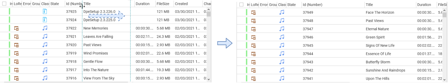 DPE grids can be easily adapted to show / hide columns directly from a configuration dialog which is built into the user interface.