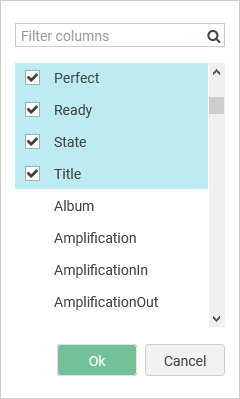 In the opened dialog, columns can be added / removed by toggling check-box corresponding to the column names. Visible columns will be marked checked and placed on top of the list.