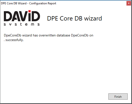 After the configuration a final window will confirm that the DpeCoreDb has been successfully installed.