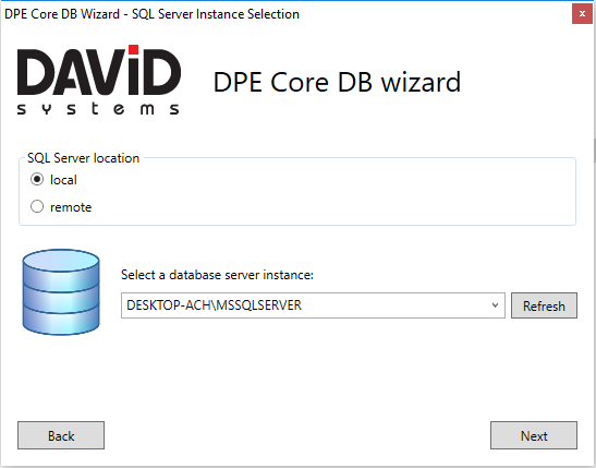 Refresh: Listing MS SQL instances in the drop down requires a running “SQL Browser Service”. When choosing a local data base, if some instance names are not found, the setup uses the InstalledInstances registry key from "HKEY_LOCAL_MACHINE\SOFTWARE\Microsoft\Microsoft SQL Server" to populate the list of available instance names.