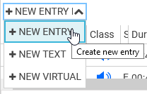 The New Entry button enables the user to create a new entry (entry, virtual entry, text entry, group, story) directly from the entry area or from a group tab for any group/story opened in group area which belong to this table.