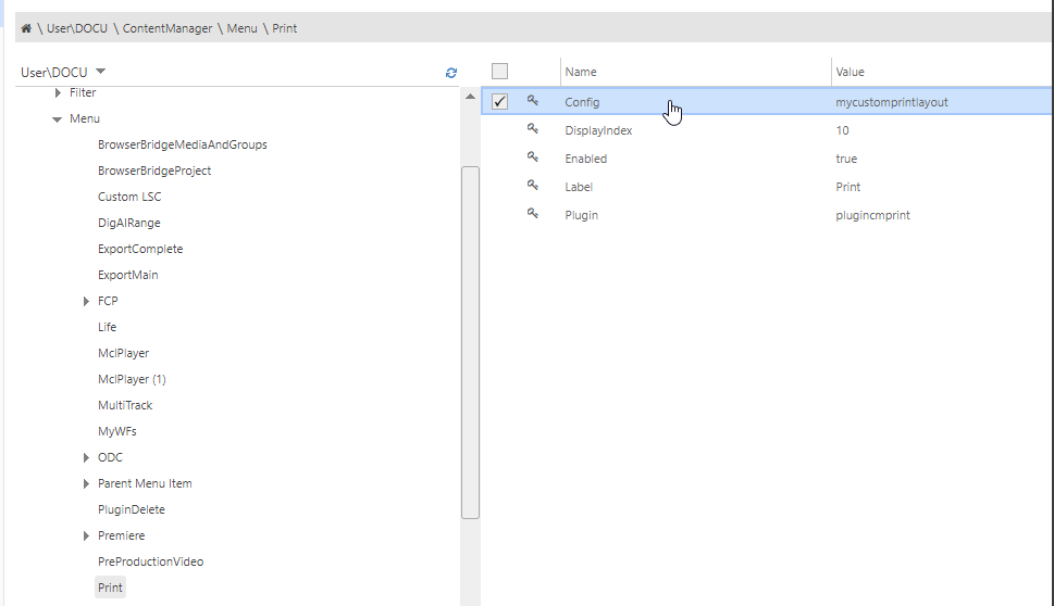 | Plugin | pluginCmPrint | Specifies which plugin is used. |