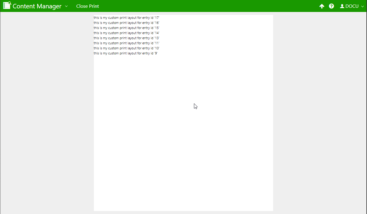 This section is part of Top Menu and Plugin Configuration in CM, from which it is possible to Printing an Entry.