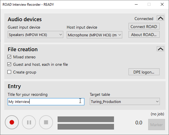 Interview Recorder uses ROAD Service as a backend providing access to local audio devices.