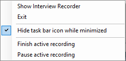 If minimized, the Interview Recorder can also be called up from the Windows system tray (notification area). See Minimized Interview Recorder.