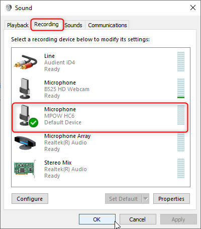 Select each an audio device for