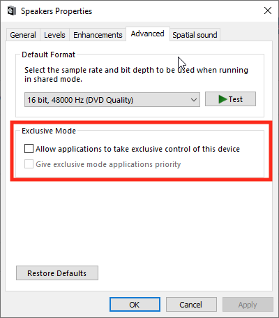 Disable "Exclusive Control" of Audio Devices