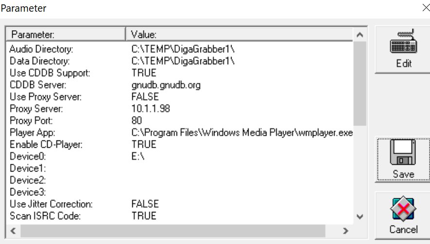 Answer:Firstly, you must be using an original audio CD; burned copies may present problems. Secondly, you will need an online connection to a CDDB Server. Make sure that your DigaGrabber is configured with the following parameters: Use CDDB Support needs to be set to 'TRUE'. (DigaGrabberV1)