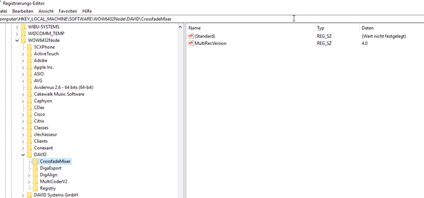 HKEY_LOCAL_MACHINE\SOFTWARE\Wow6432Node\DAVID\CrossfadeMixer MultiRecVersion = 4