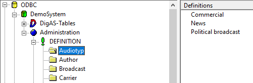 Out-of-the-box, several DEFINITION lists exist in every Digas-database, such as Category, Era, Target, Tempo etc. They can be used, for instance, to populate drop-down boxes in standard and custom DBM Entry Masks.