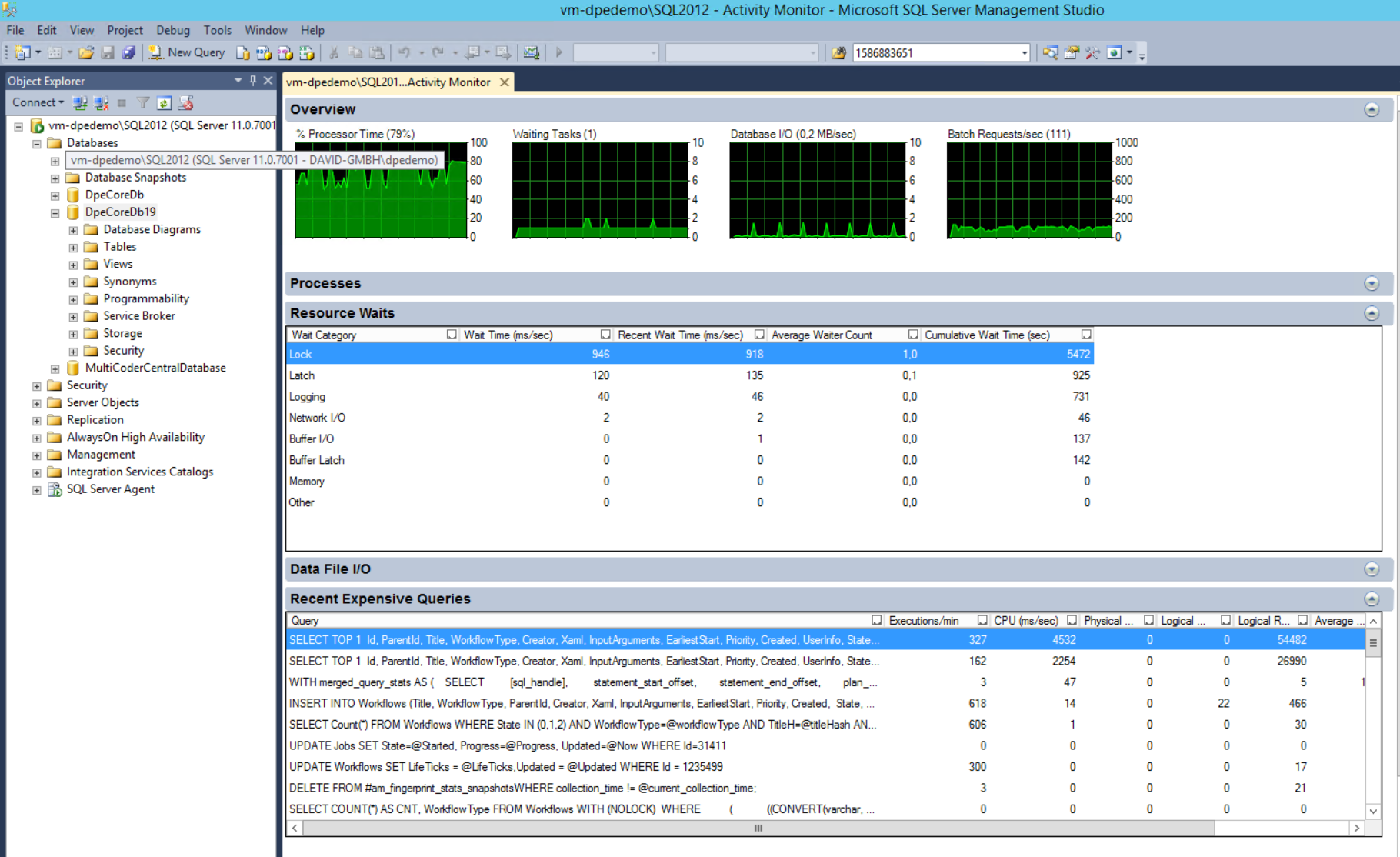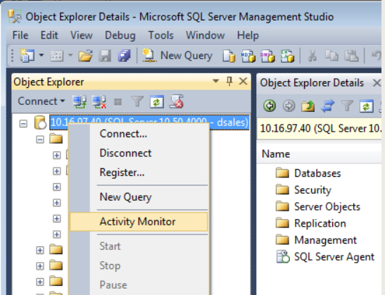 - https://www.mssqltips.com/sqlservertip/1917/performance-analysis-using-sql-server-2008-activity-monitor-tool/