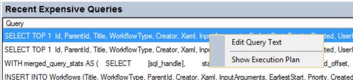 Use the context menu to get the query text or see the execution plan