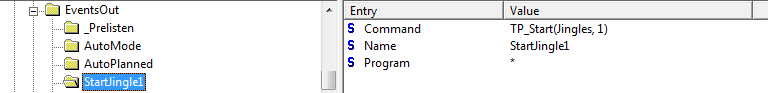 Create an EventsOut subkey with the command "TP_Start(Jingles, 1)":
