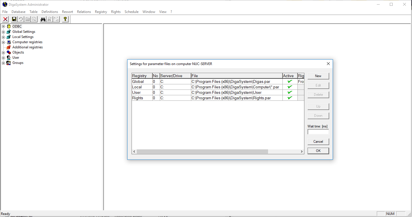 - 2d. Use the 'up' and 'down' buttons in parameter file settings to place the primary parameter files above the others of the same type. After closing and reopening Admin, the green check marks will have moved to reflect the new order.